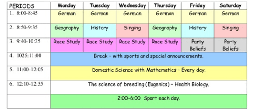 Look at the school timetable for a girls’ school in Nazi Germany in 1935 below. Briefly give an answer to the following questions: